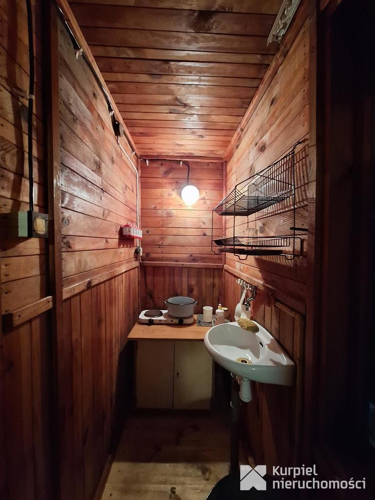 Domek wyposażony jest w instalację elektryczną, woda ze wspólnej sieci, kanalizacja w formie szamba.