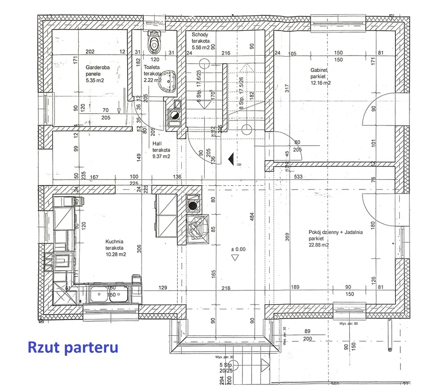 Ponadto przy wejściu znajduje się przestronna garderoba, a także toaleta, co sprawia, że parter staje się wygodną strefą dzienną, w której mieszkańcy mogą uczestniczyć w życiu rodzinnym.
