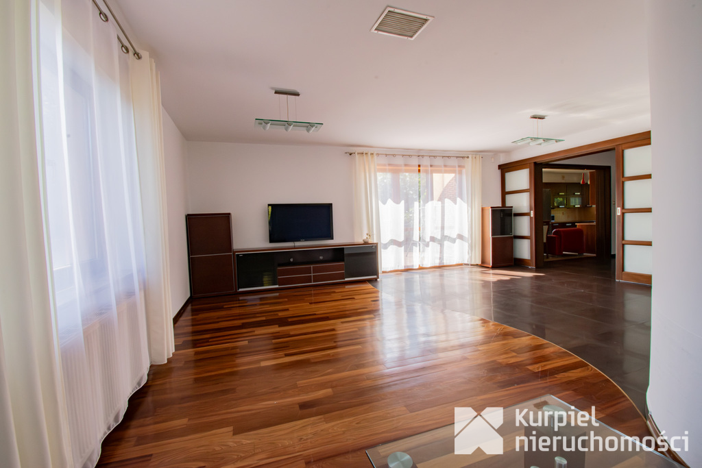 Ogród: Pięknie urządzony, idealny do relaksu i spotkań towarzyskich. Działka jest w pełni ogrodzona z automatyczną bramą, podjazdy wyłożone kostką brukową, a teren jest starannie zagospodarowany. Ogród został zaprojektowany przez architekta ogrodów, z licznymi ozdobnymi krzewami i drzewami, które nadają przestrzeni niepowtarzalny urok. Taras, który znajduję się w doku posiada bezpośrednie wyjście na ogród.