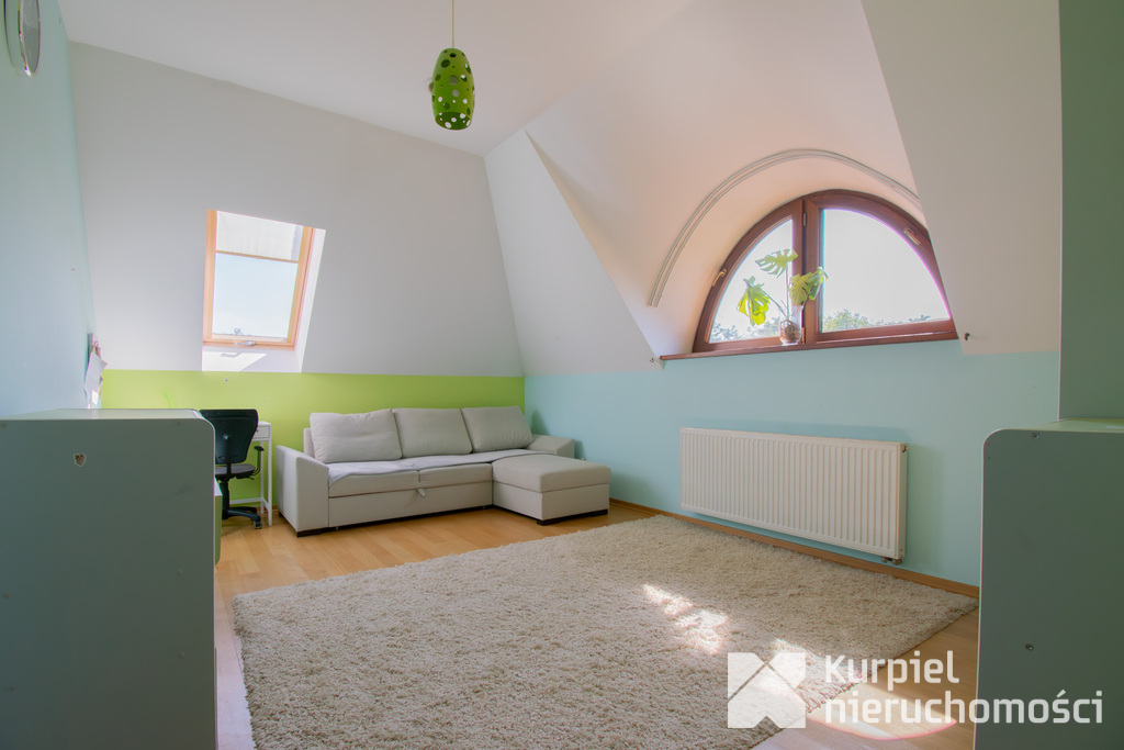 Poddasze: pomieszczenie typu open space do własnej aranżacji, idealne miejsce do przechowywania niezbędnych rzeczy.
