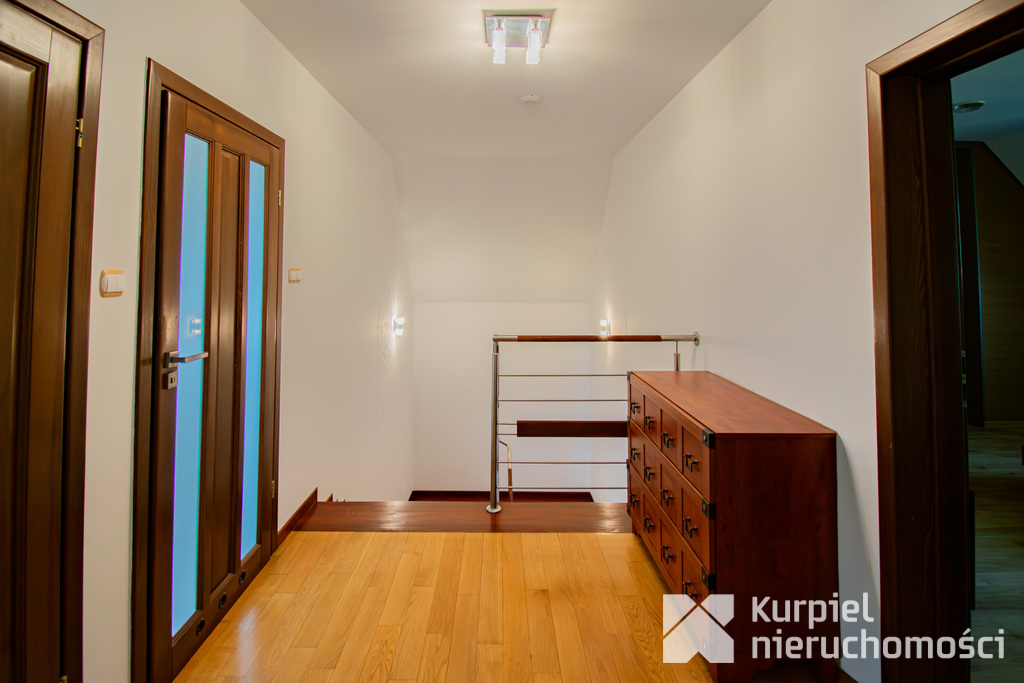 Pierwsze piętro: Główna sypialnia z garderobą, 2 pokoje, łazienka z wanną oraz osobna toaleta.