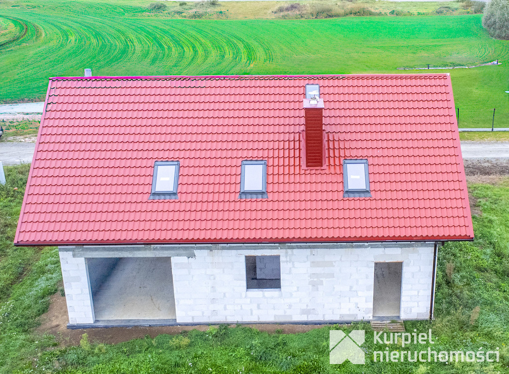 - Dom sprzedawany w stanie surowym otwartym – bez stolarki okiennej, drzwi zewnętrznych, instalacji wewnętrznych, wykończeń.