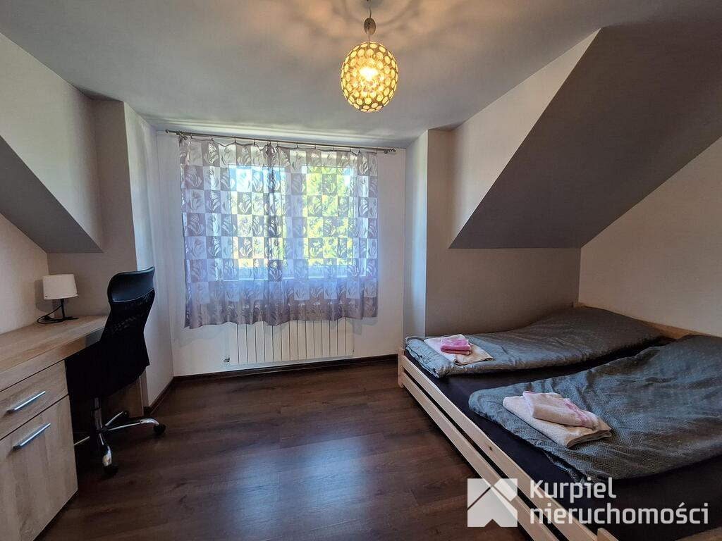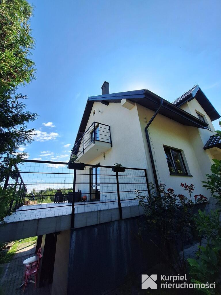 Budynek wybudowany w 2012 roku w technologii tradycyjnej z pustaka ceramicznego, kryty blachodachówką, podpiwniczony, elewacja ocieplona styropianem i otynkowana. Budynek jest bardzo funkcjonalny, przestrzenny, idealny dla większej rodziny ze względu na dużą ilość sypialni i przestrzeń dodatkową jaką tworzy rozległa piwnica i garaż dwustanowiskowy, a także duży taras. Dom posiada również takie udogodnienie jak sauna.