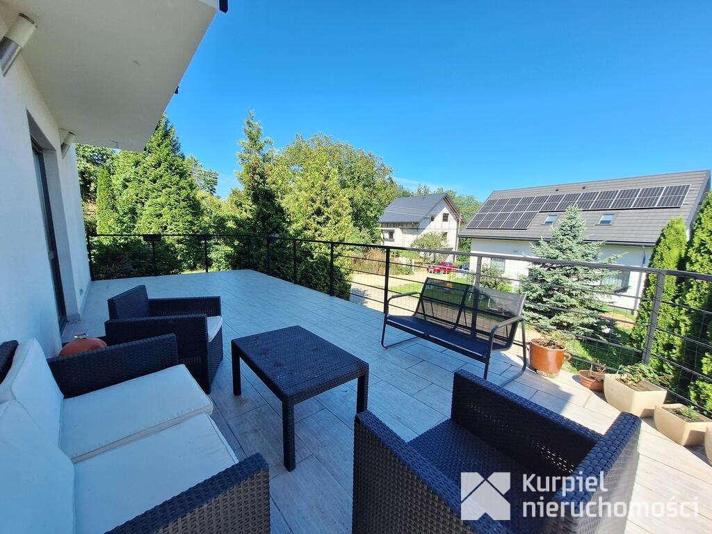 - duży salon z aneksem kuchennym, kominkiem i wyjściem na przestrzenny taras,