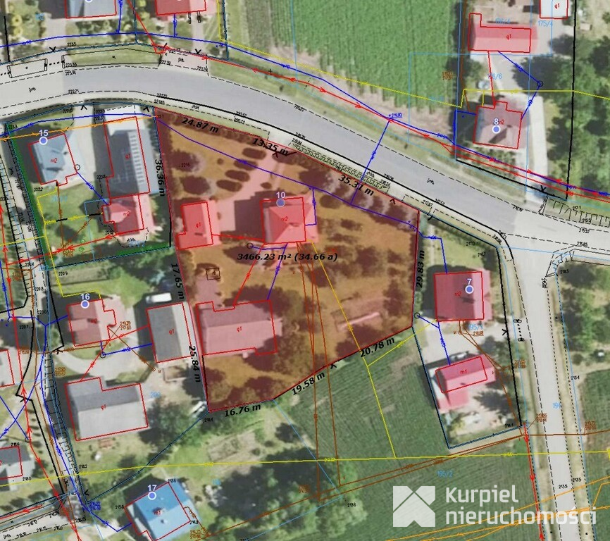 duża, zielona działka z sadem i dwiema bramami wjazdowymi