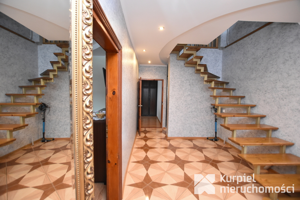 Dom o powierzchni ok. 200 m², piętrowy, w całości podpiwniczony.