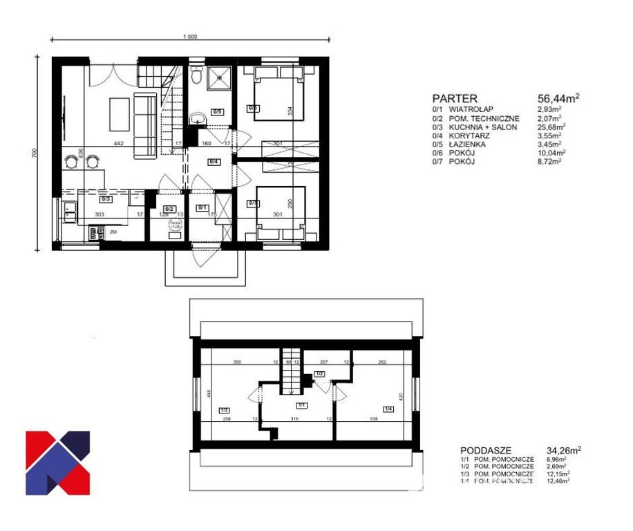 - Budynek parterowy z możliwością wykorzystania wykończonego i ocieplonego poddasza.