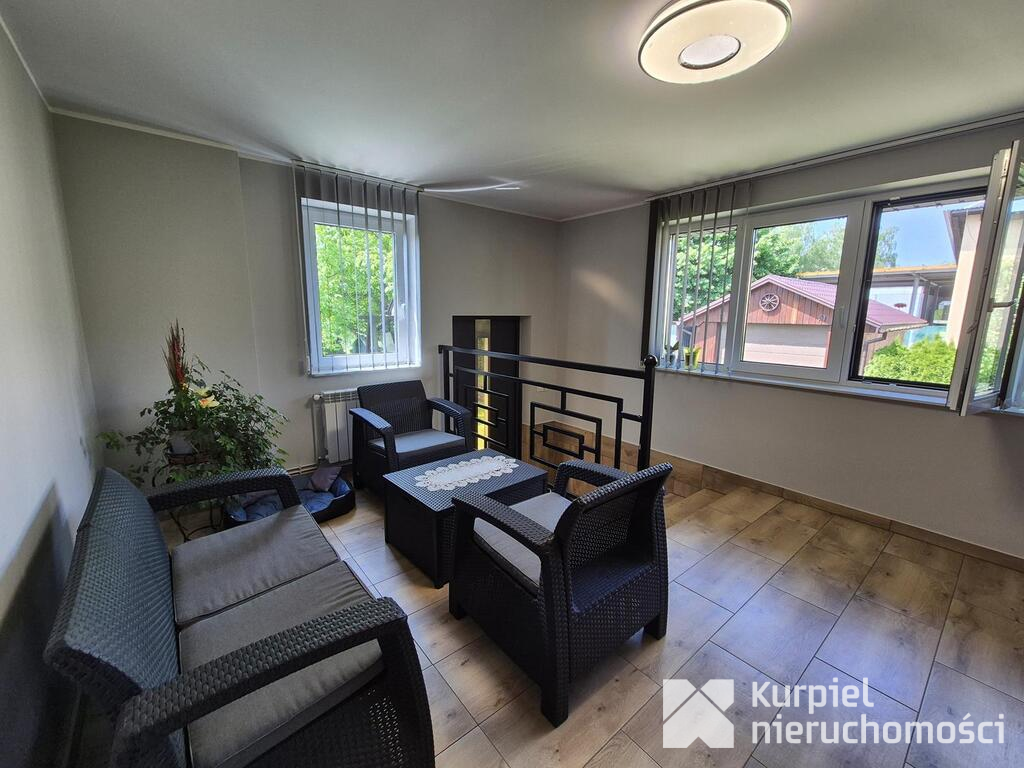 Zarówno położenie domu w spokojnej okolicy, jak i fakt, że jest utrzymany w bardzo dobrym stanie technicznym to jego niewątpliwe atuty. Wyposażenie widoczne na zdjęciach w większości jest w cenie domu, co sprawia, że można w nim zamieszkać bez dodatkowych nakładów a z czasem urządzić go sobie według własnych upodobań.