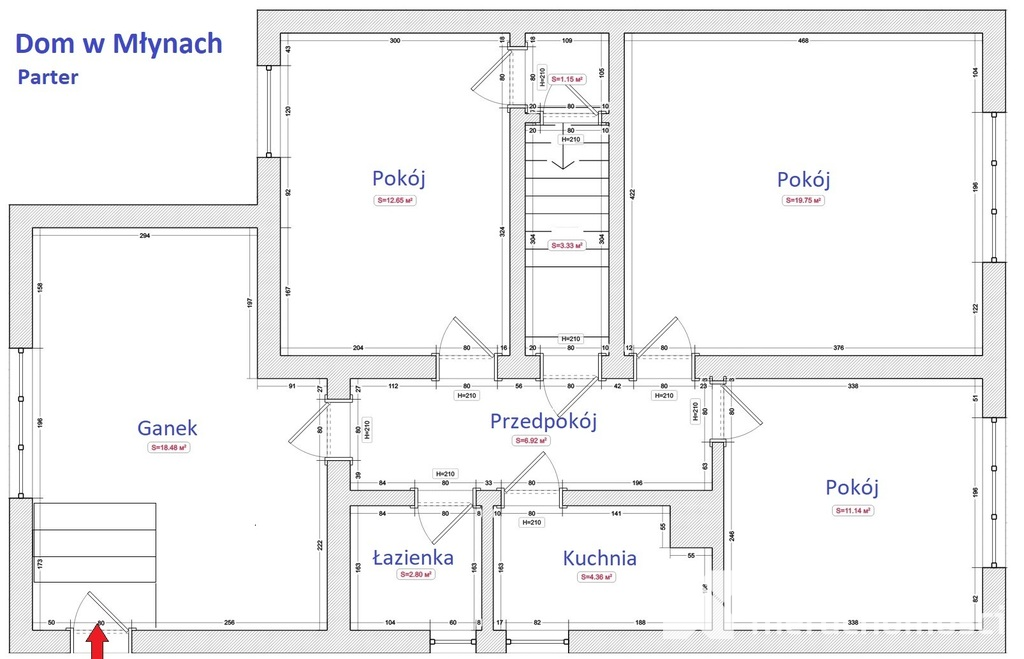 Na poziomie parteru znajdują się następujące pomieszczenia: