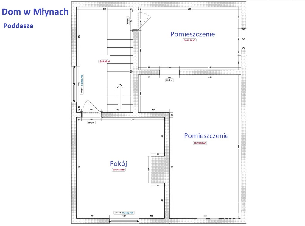 Poddasze częściowo jest niezagospodarowane, znajduje się tam jeden urządzony pokój gościnny. Można zatem wykorzystać poddasze do urządzenia w nim innych pomieszczeń mieszkalnych takich jak łazienka i dodatkowe pokoje lub też nadal traktować je jako część gospodarczą. Pod tym względem dom posiada potencjał pod względem zagospodarowania dodatkowej powierzchni i stwarza potencjał dla rodziny z dziećmi.