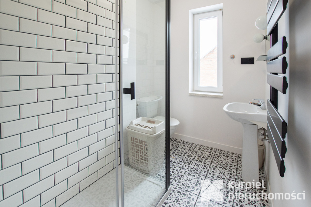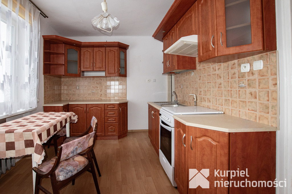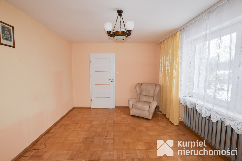Dom przeszedł szereg modernizacji – wymieniono okna na trzyszybowe PCV, wykonano nową elewację, odnowiono pokoje na parterze, a łazienka na piętrze została całkowicie zmodernizowana. Ocieplony strop i nowy piec gazowy zapewniają komfort przez cały rok.