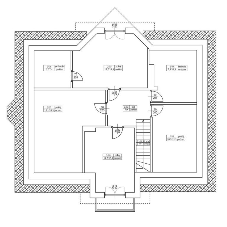 Solidnie zbudowany, parterowy dom z użytkowym poddaszem o powierzchni mieszkalnej 170 m², wybudowany w technologii tradycyjnej z wysokiej jakości materiałów. Funkcjonalny układ pomieszczeń zapewnia komfort codziennego życia, a duża ilość otwartej przestrzeni daje poczucie swobody. Jest to układ praktyczny i przemyślany pod każdym względem.