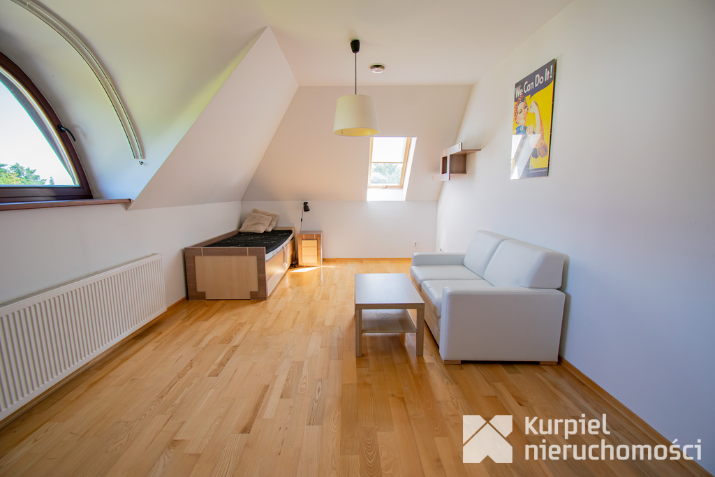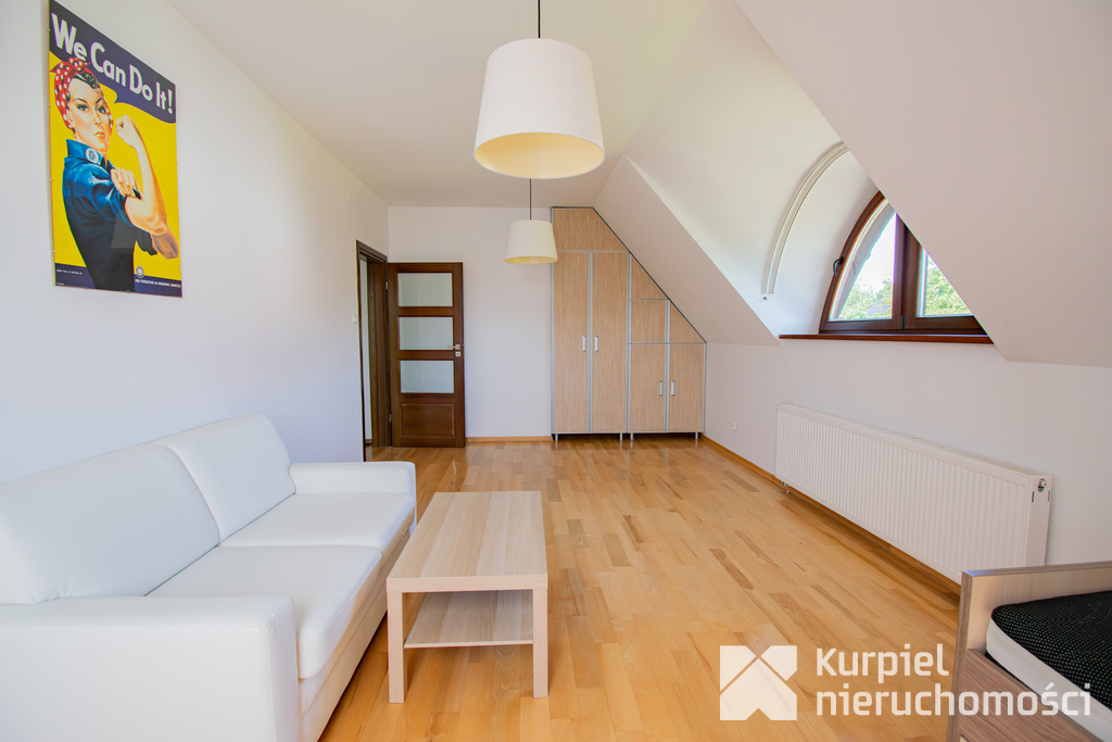 Poddasze: pomieszczenie typu open space do własnej aranżacji, idealne miejsce do przechowywania niezbędnych rzeczy.