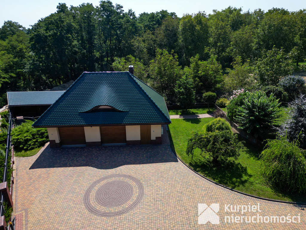 Ogród: Pięknie urządzony, idealny do relaksu i spotkań towarzyskich. Działka jest w pełni ogrodzona z automatyczną bramą, podjazdy wyłożone kostką brukową, a teren jest starannie zagospodarowany. Ogród został zaprojektowany przez architekta ogrodów, z licznymi ozdobnymi krzewami i drzewami, które nadają przestrzeni niepowtarzalny urok. Taras, który znajduję się w doku posiada bezpośrednie wyjście na ogród.