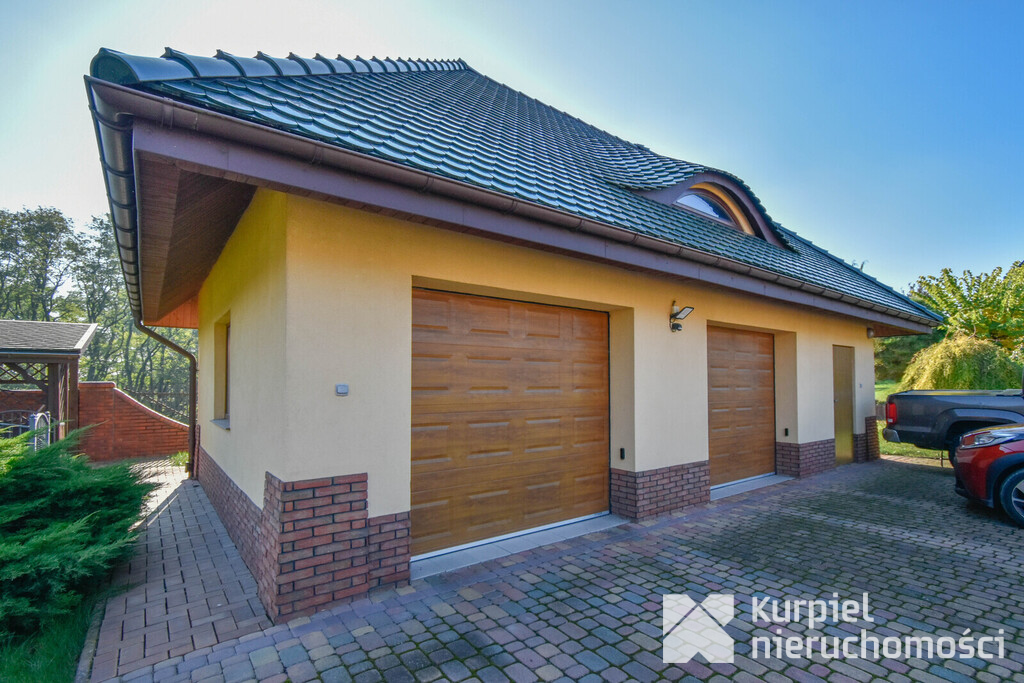 Garaż wolnostojący: na działce znajduję się osobny dwustanowiskowy garaż z automatyczną bramą oraz pomieszczeniem gospodarczym do przechowywania sprzętów ogrodniczych.