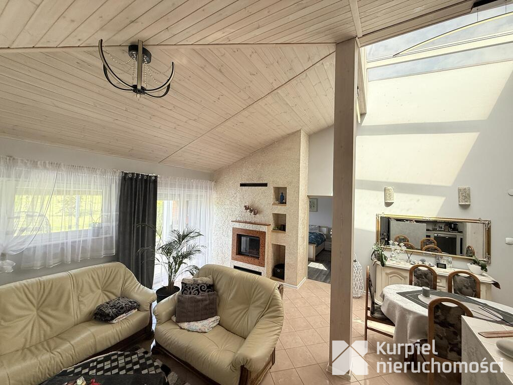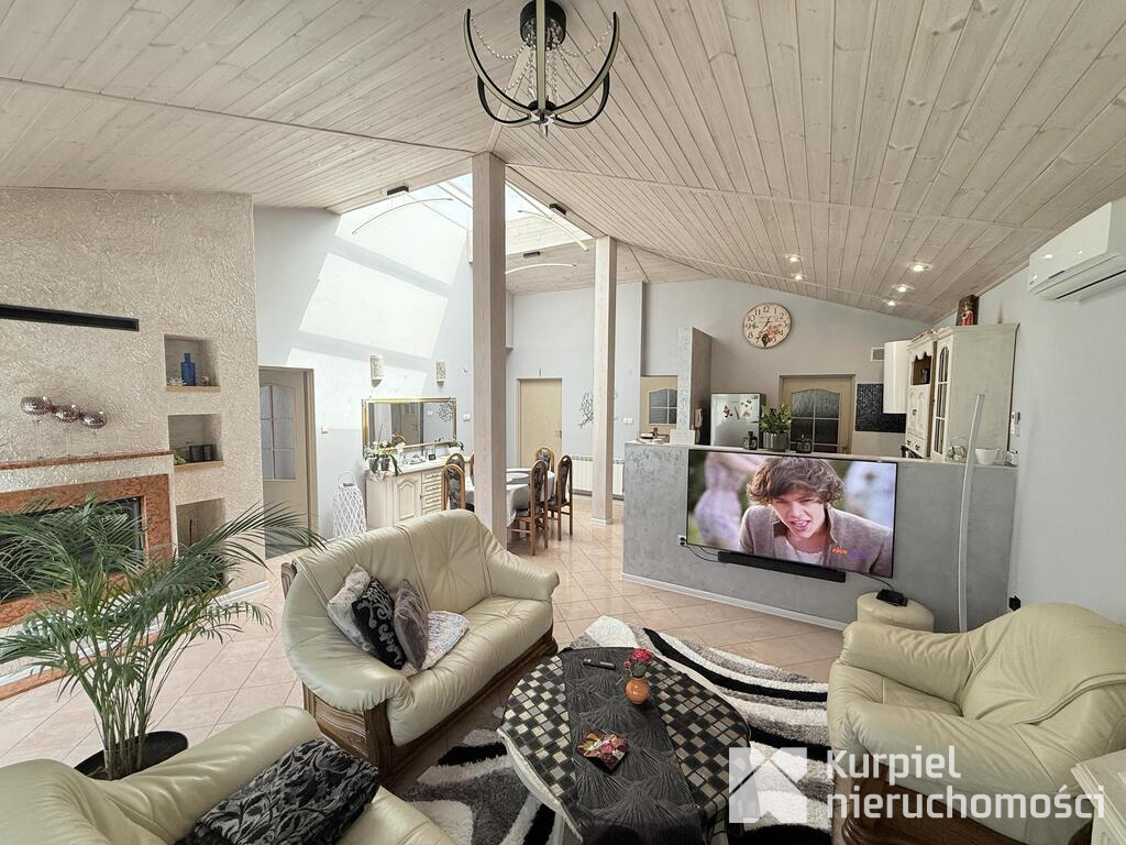 - przestronny salon z aneksem kuchennym tworzący wygodną strefę dzienną