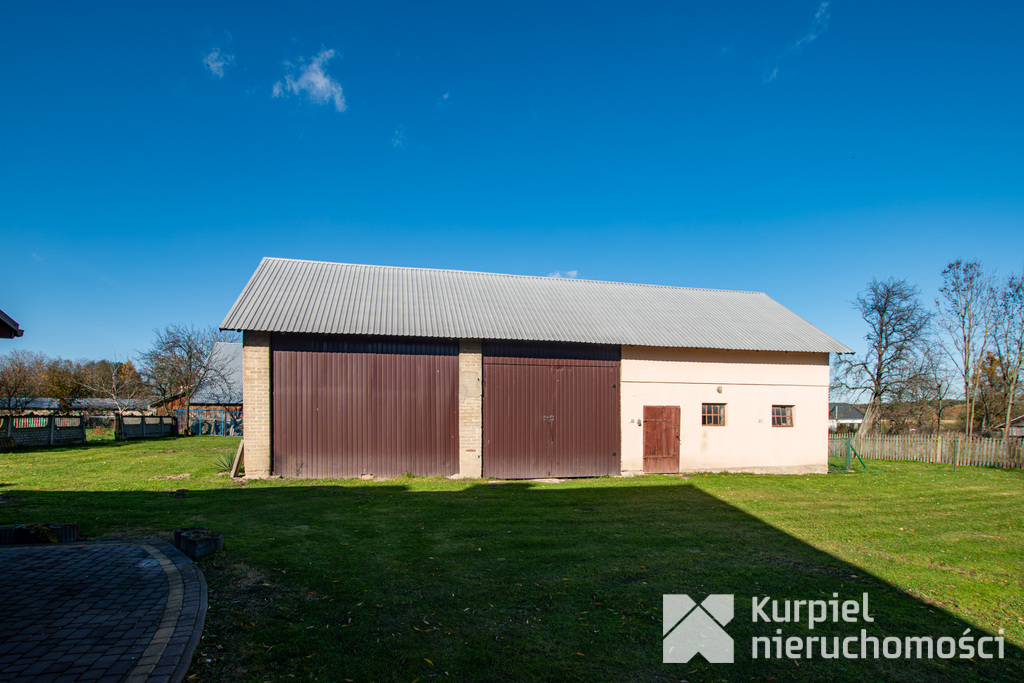 Na terenie posesji znajduje się również budynek gospodarczy z dwoma wjazdami, idealny np. na warsztat, magazyn lub działalność gospodarczą.
