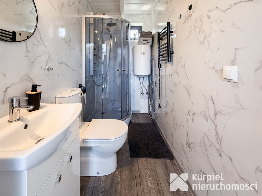 - Łazienka z kabiną prysznicową.