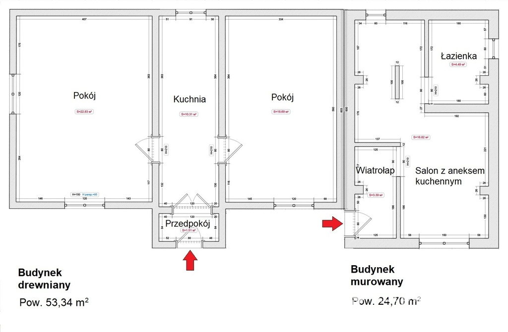 ???? część drewniana (ok. 60 m²) – zamieszkała, gotowa do użytkowania