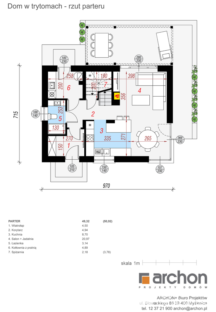 Projekt "Dom w Trytomach" firmy Archon o powierzchni użytkowej 94 metrów kwadratowych.