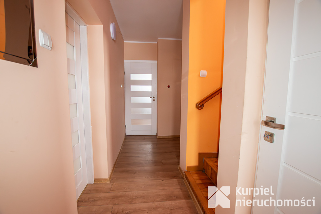 Dom przeszedł szereg modernizacji – wymieniono okna na trzyszybowe PCV, wykonano nową elewację, odnowiono pokoje na parterze, a łazienka na piętrze została całkowicie zmodernizowana. Ocieplony strop i nowy piec gazowy zapewniają komfort przez cały rok.