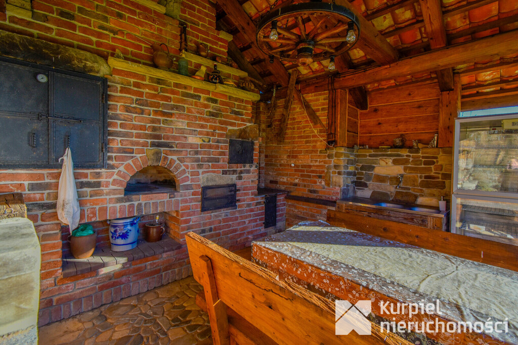 Uzupełnieniem jest półotwarta kuchnia terenowa opalana drewnem z piecem chlebowym, piecem do pizzy, suszarnią i wędzarnią – idealna do organizacji kameralnych spotkań i wydarzeń.