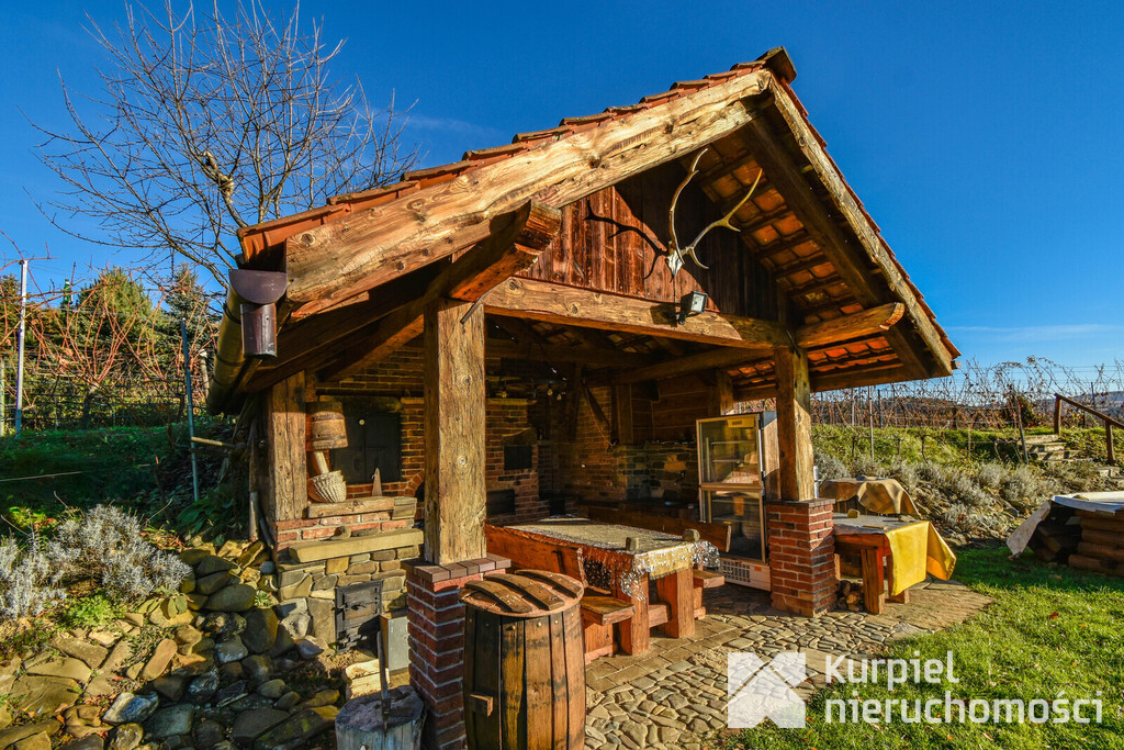 Na terenie nieruchomości znajduje się klimatyczna piwniczka degustacyjna wykonana z kamienia, cegły i drewna – gotowa do użytkowania. To przestrzeń, która sprzyja spokojnym spotkaniom, degustacjom i rozmowom przy winie.