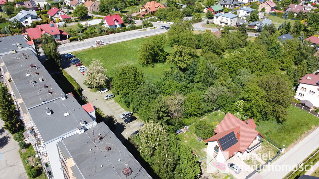 Działka położona jest w intensywnie rozwijającej się części miasta, wśród gęstej zabudowy jednorodzinnej. Mimo miejskiego charakteru otoczenia, w niedalekiej odległości znajduje się park miejski, przedszkola, szkoły oraz liczne sklepy.