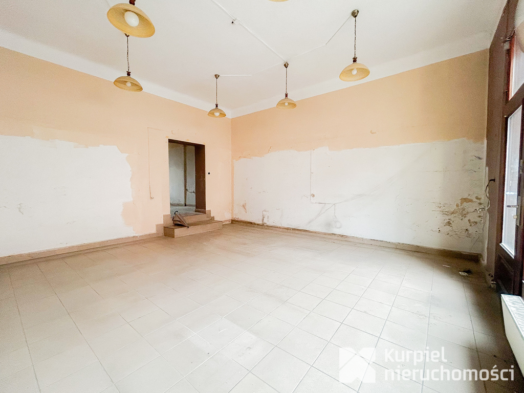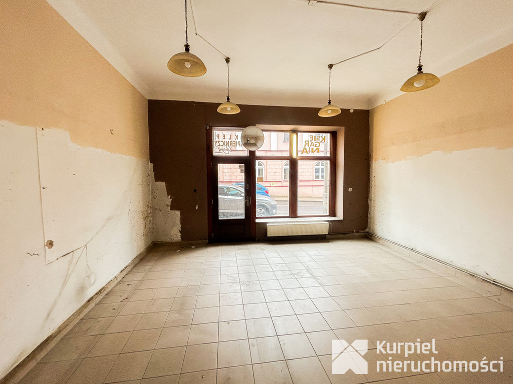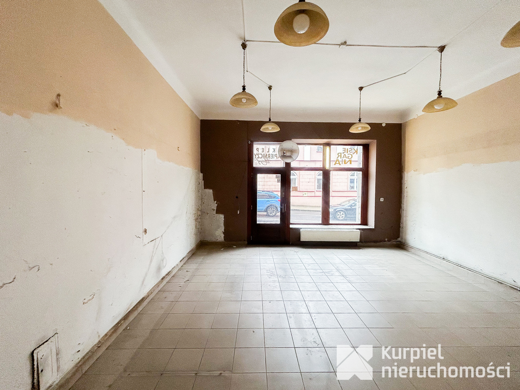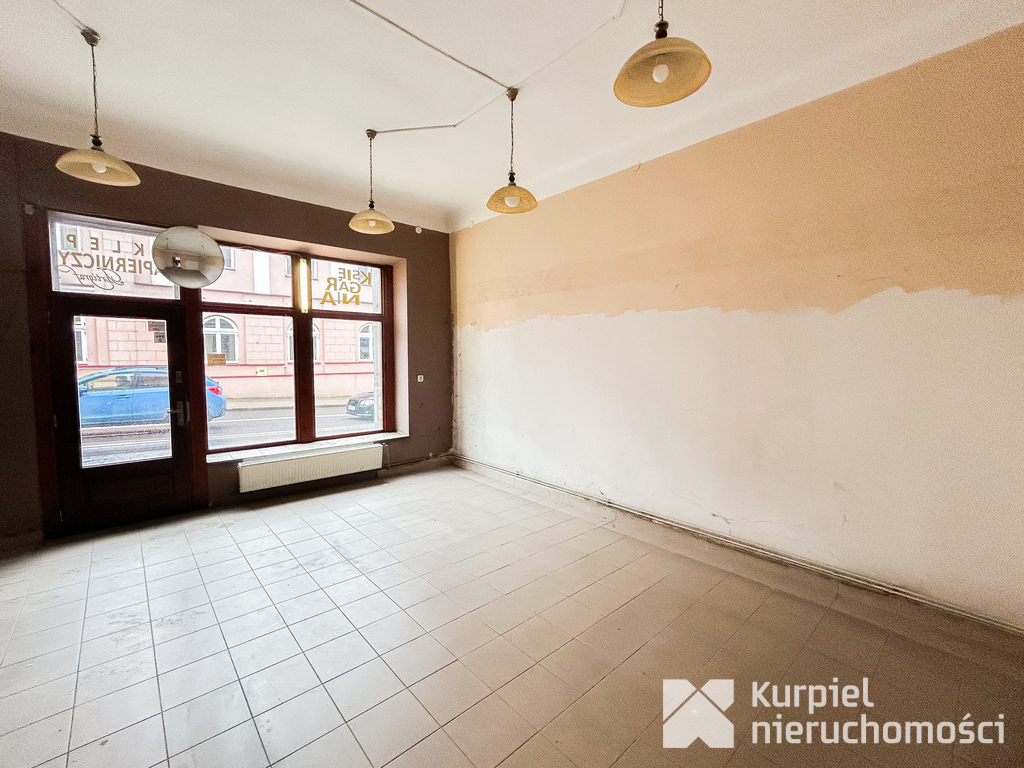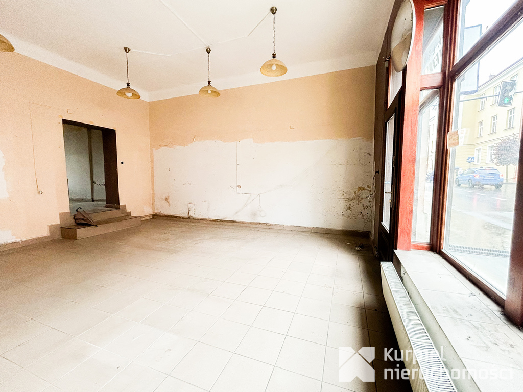 - przestronne, wysokie pomieszczenie główne (33 m²) z dużą witryną i wejściem od ulicy,