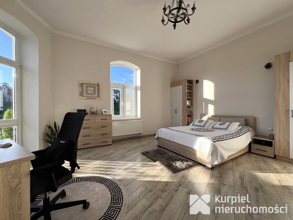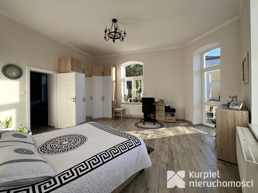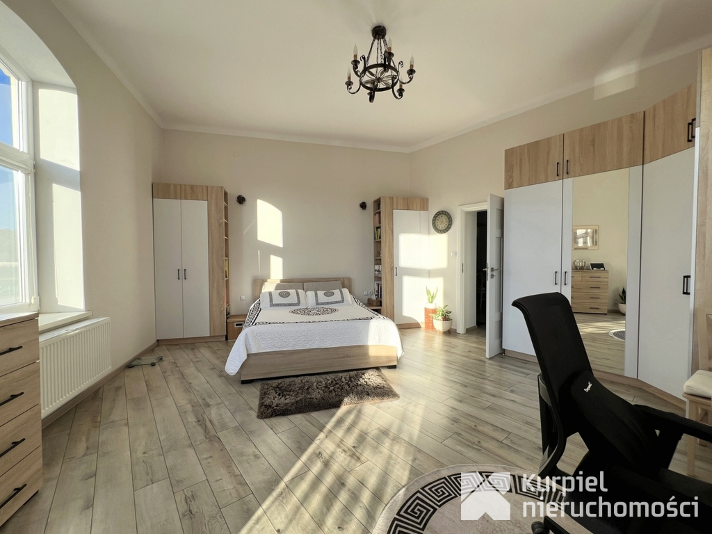 Pomieszczenia wysokie, powierzchnie pokoi imponujące. Z przedpokoju wchodzi się na wprost do łazienki z WC, na lewo do salonu a aneksem kuchennym z ekspozycją okien pólnocno-wschodnią. Z salonu przechodzi się do imponującej sypialni z balkonem o ekspozycji okien trójstronnej - północo-wschodniej, wschodniej i południowo-wschodniej. Aranżacja została zaprojektowana przez projektanta i wyposażenie jest wliczone w cenę nieruchomości.