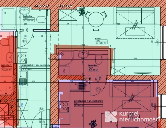 - UKŁAD MIESZKANIA: salon z jadalnią, osobna kuchnia, łazienka z kabiną prysznicową