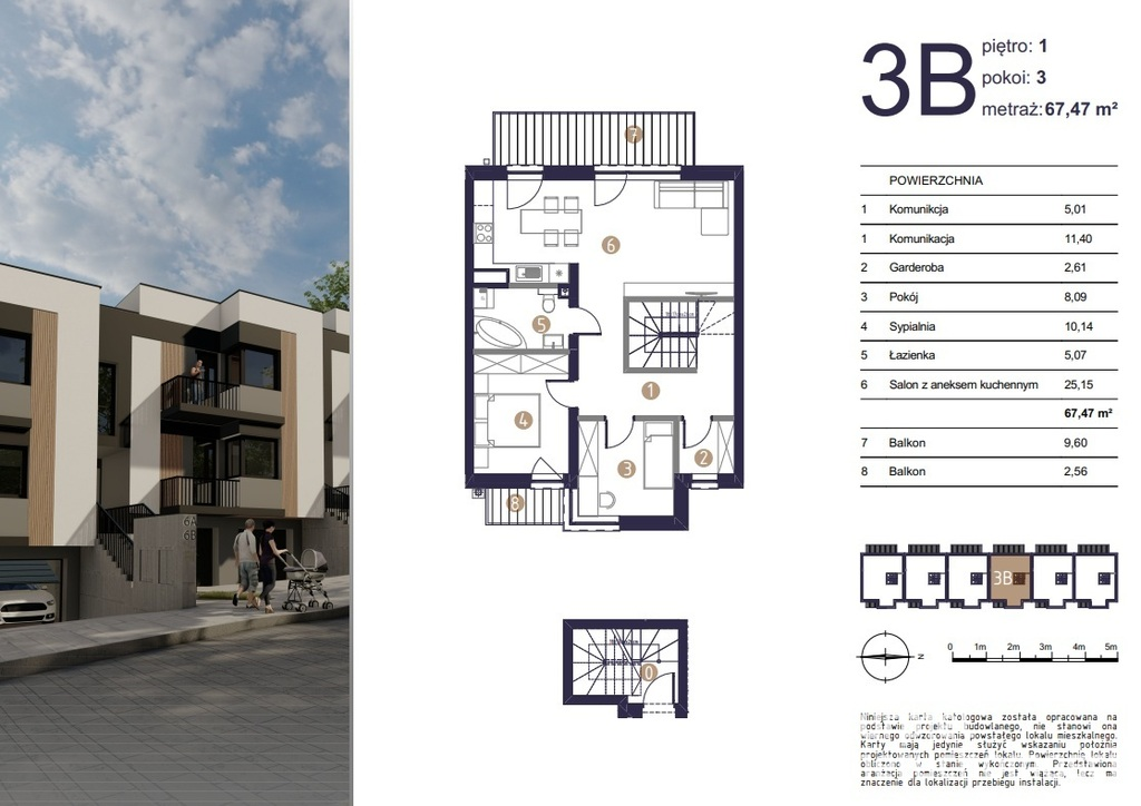 Kurpiel Nieruchomości przedstawia Państwu mieszkanie trzypokojowe o powierzchni 67.47 m2 usytuowane na 1 piętrze szeregowca.