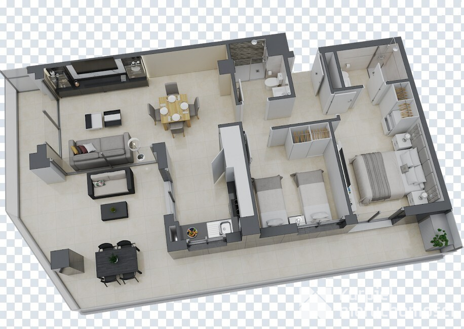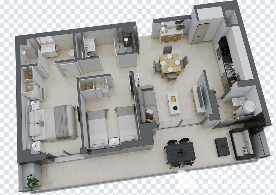 W kompleksie znajduje się 148 apartamentów z 2 lub 3 sypialniami oraz 2 łazienkami. Każde mieszkanie posiada przestronny taras, prywatne miejsce parkingowe (naziemne lub podziemne) oraz dostęp do licznych udogodnień.