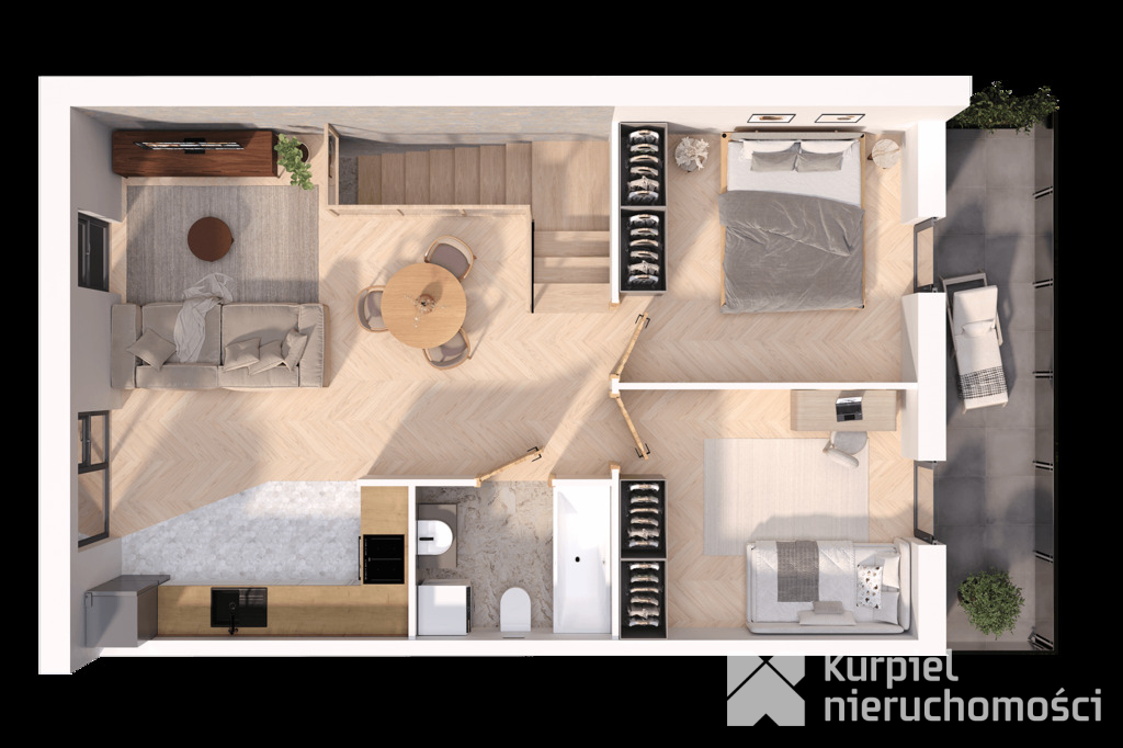 - Mieszkania na piętrze z przestronnym balkonem i możliwością adaptacji poddasza