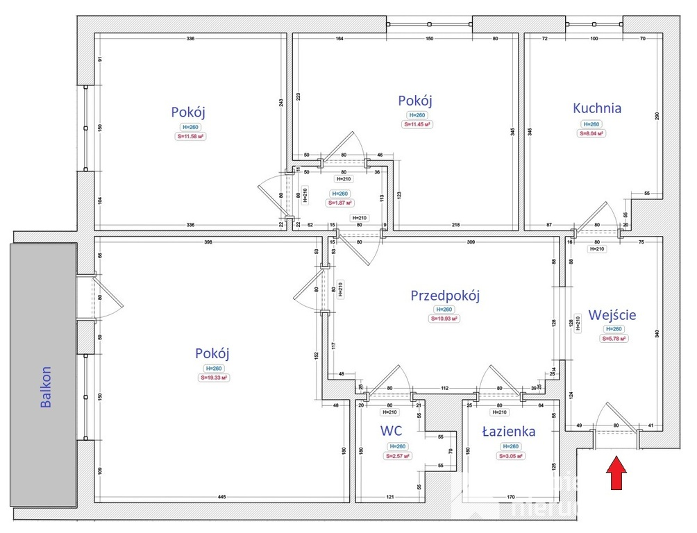 - duży pokój z wyjściem na balkon,