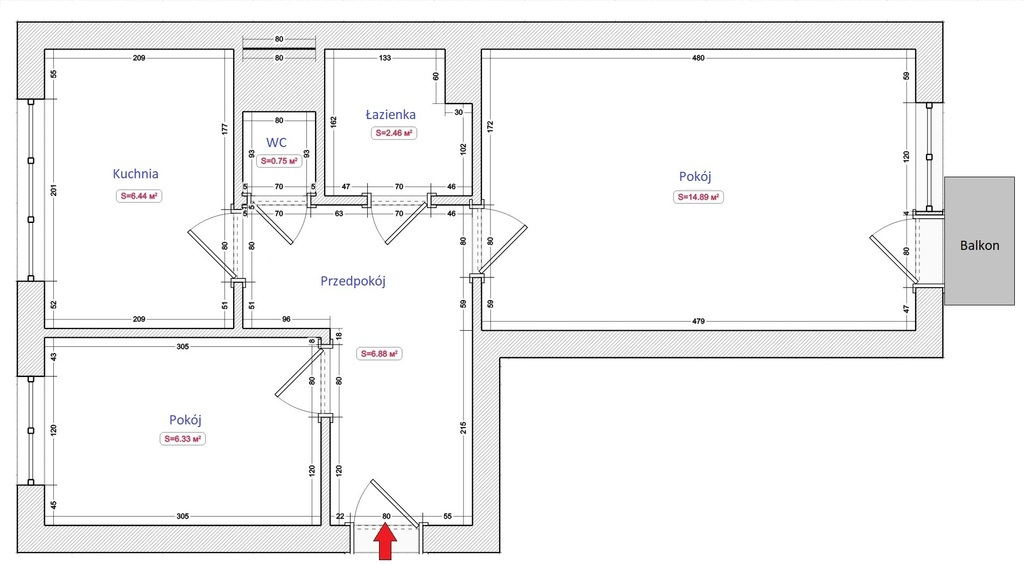 Powierzchnia użytkowa mieszkania to 37,70 m2 i składa się na nią: