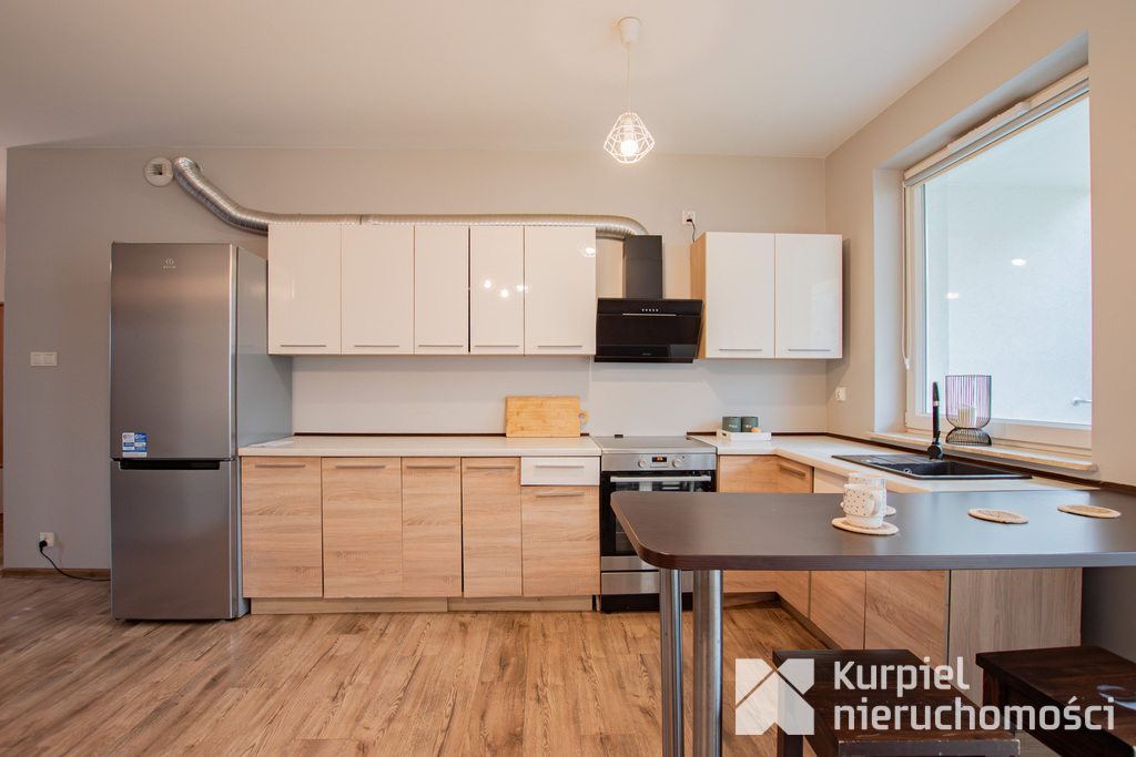 - kuchnia w zabudowie wraz ze sprzętem AGD: lodówka, kuchenka elektryczna, piekarnik, okap, zlewozmywak,