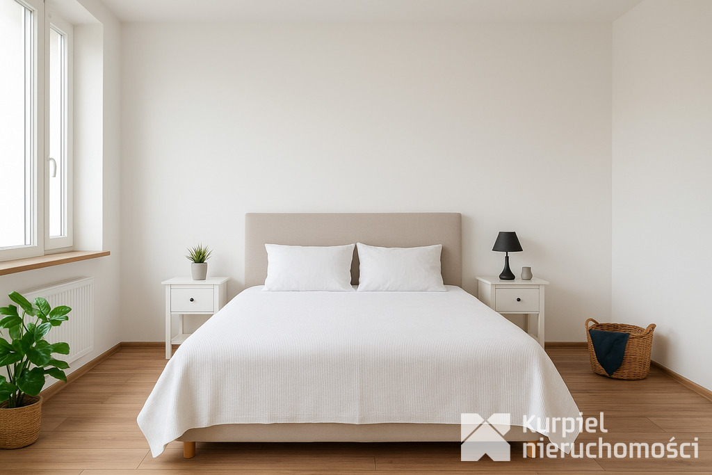 Dwa ogromne okna zarówno w części dziennej jak i w sypialni sprawiają, że mieszkanie jest pięknie doświetlone.