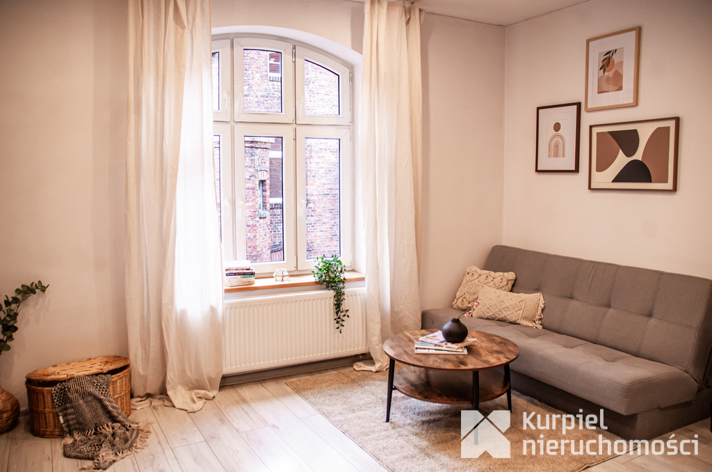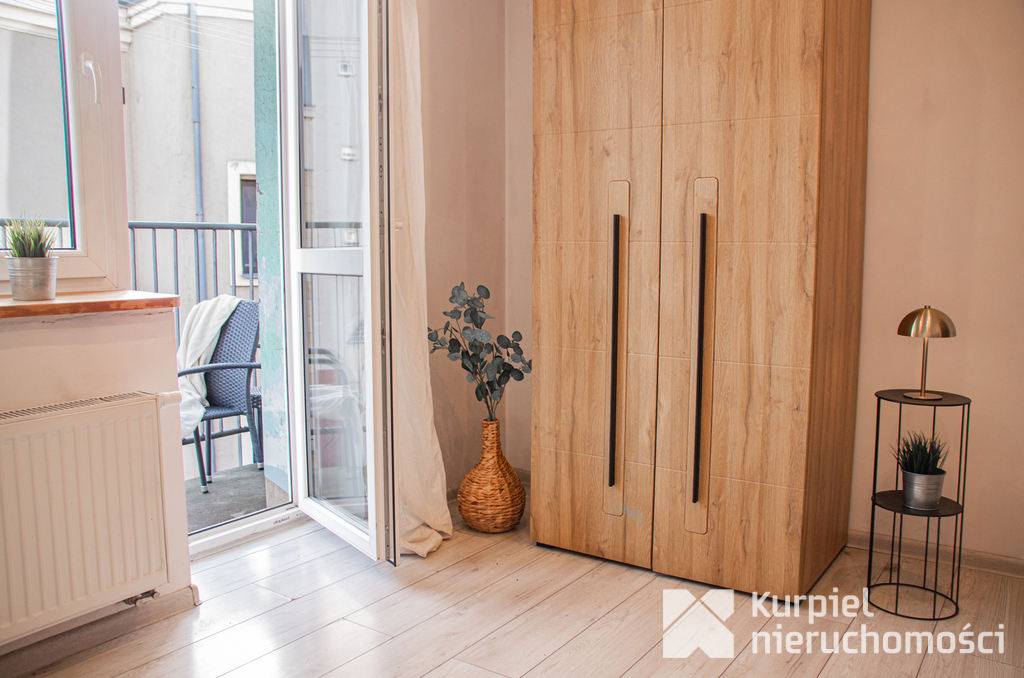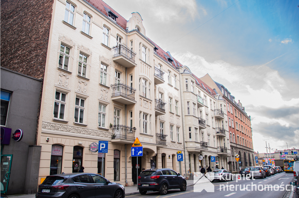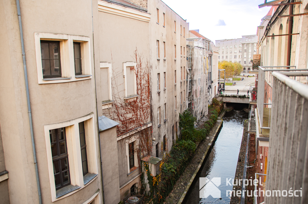 Gratka dla fanów kamienic - klimatyczne trzypokojowe mieszkanie przy rynku w Katowicach z balkonem tuż nad rzeką Rawą i sławnym neonem "Zachód Słońca"
