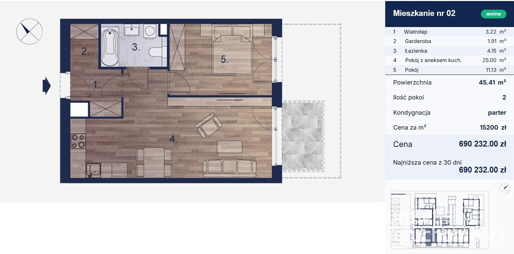 - Powierzchnia 45,41 m2