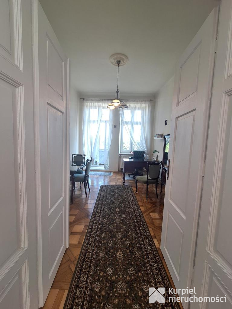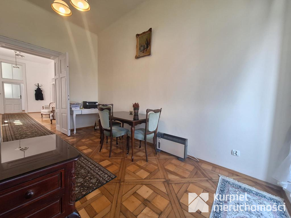 W mieszkaniu przeprowadzono remont, jednak zachowano styl starej kamienicy z wysokimi sufitami, piecem kaflowym, drewnianymi drzwiami i ładnie odświeżonym parkietem.