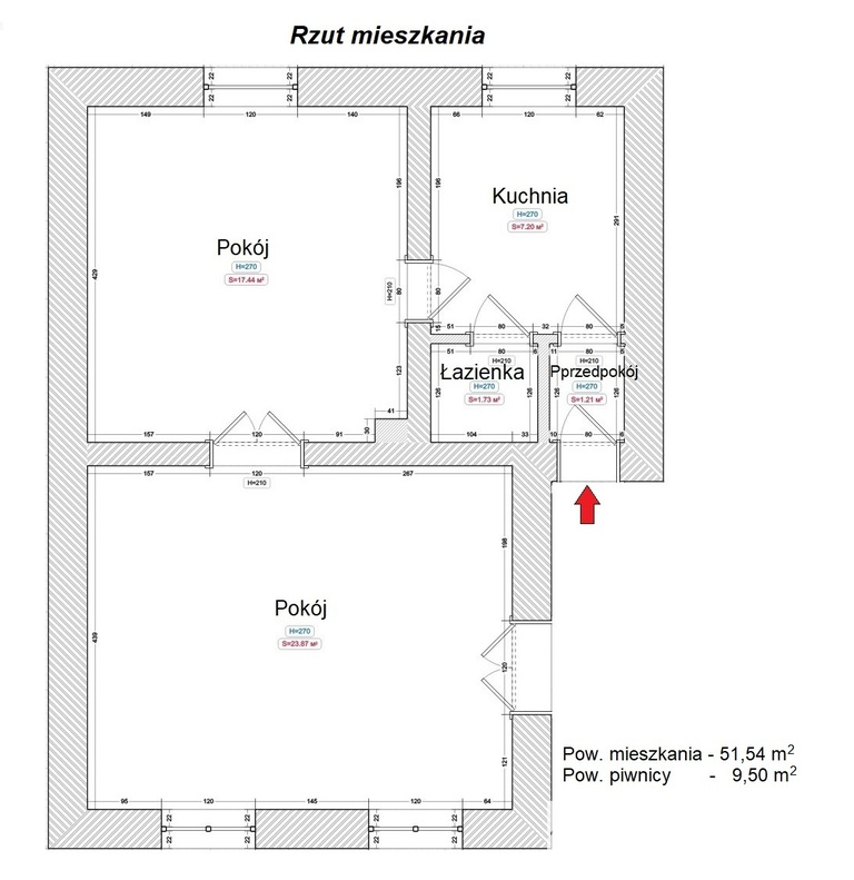 - Powierzchnia 51,54 m2