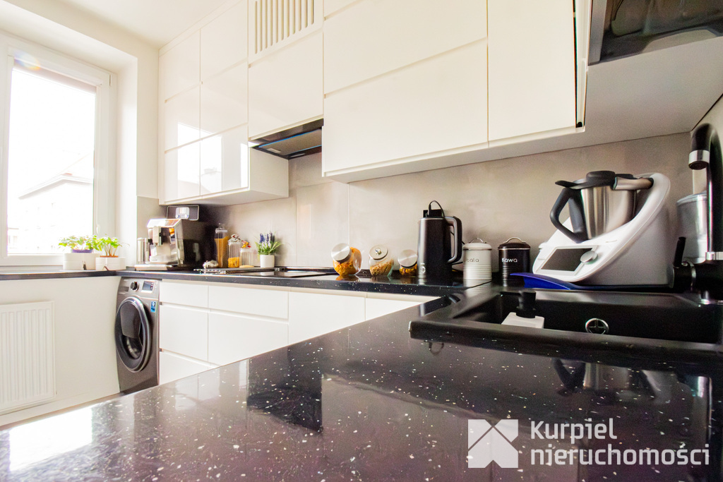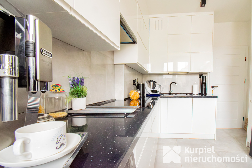 - kuchnia z meblami na wymiar oraz markowym sprzętem AGD w zabudowie (wysoka jakość)