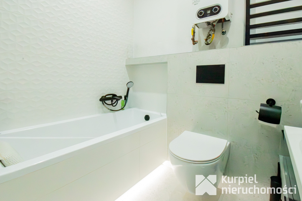 - łazienka z wanną, nowoczesna podświetlana zabudowa,