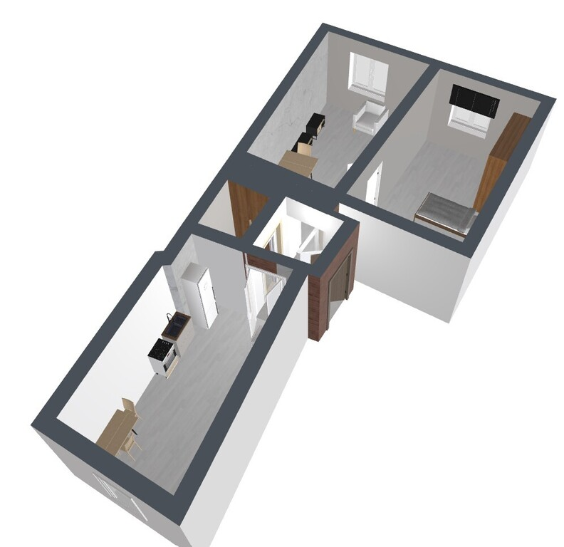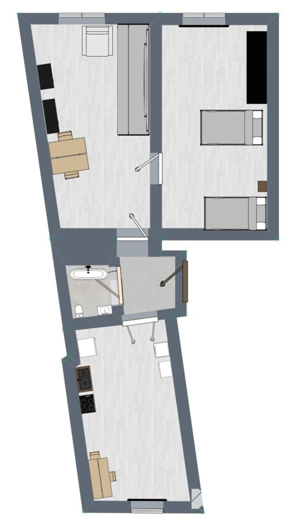 Mieszkanie posiada powierzchnię 50 m2 i posiada następujące pomieszczenia: