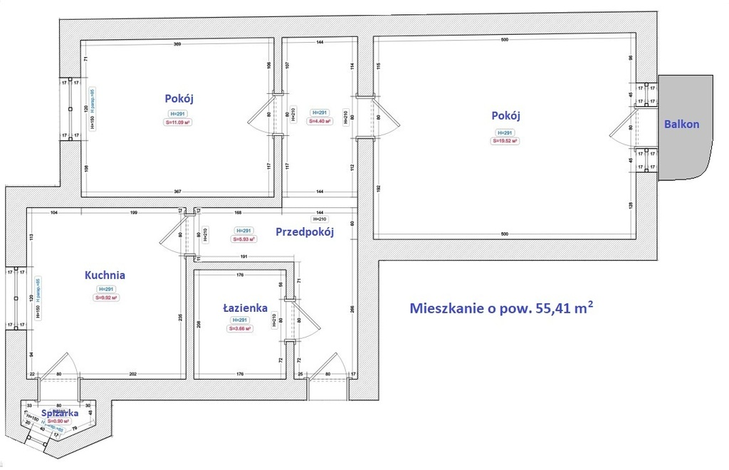 - Powierzchnia 55,41 m2