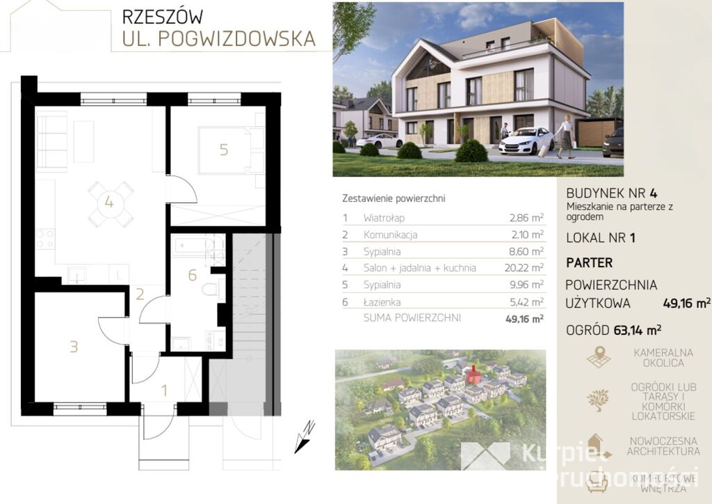 - Powierzchnia użytkowa: 49,16 m2