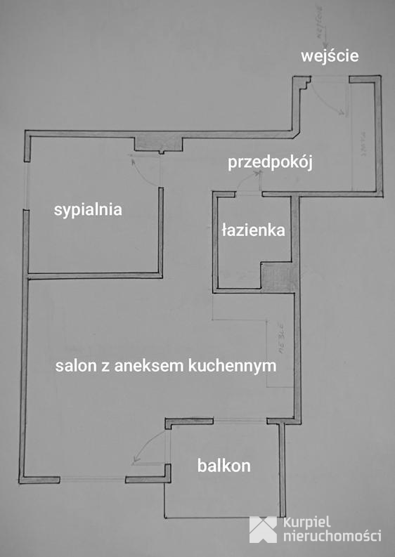 - jasny salon z aneksem kuchennym i wyjściem na balkon