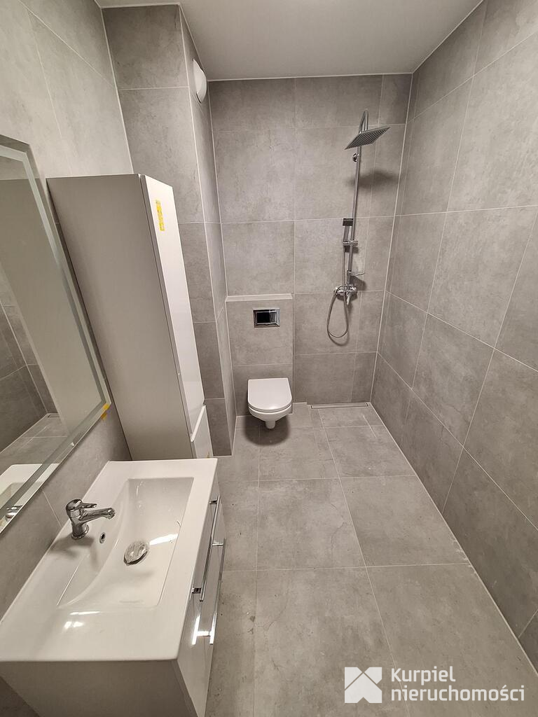 - łazienka z WC wyposażona w prysznic i umywalkę,
