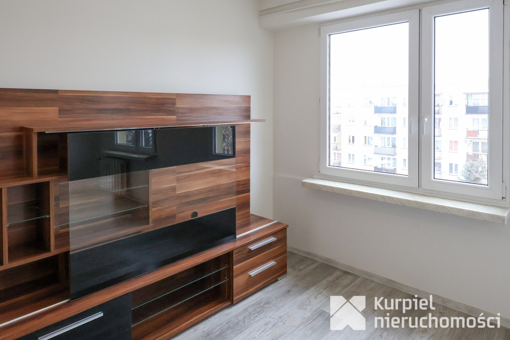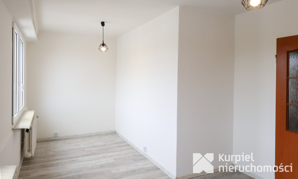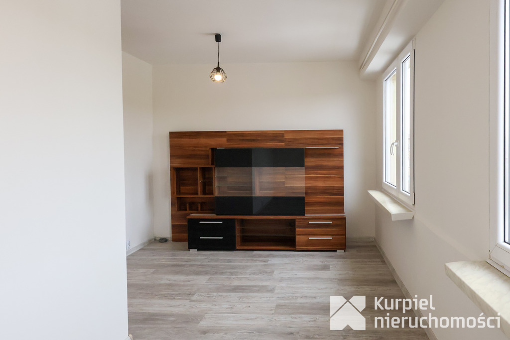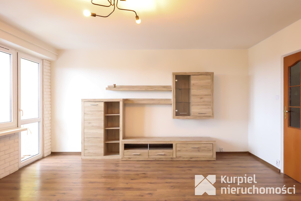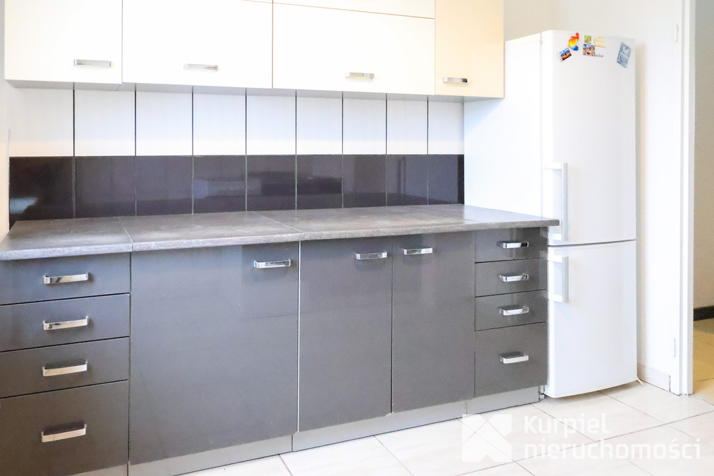 Mieszkanie częściowo umeblowane, meble i wyposażenie w dobrym stanie. Ściany odświeżone i pomalowane na biało, w salonie panele, w kuchni i łazience płytki.